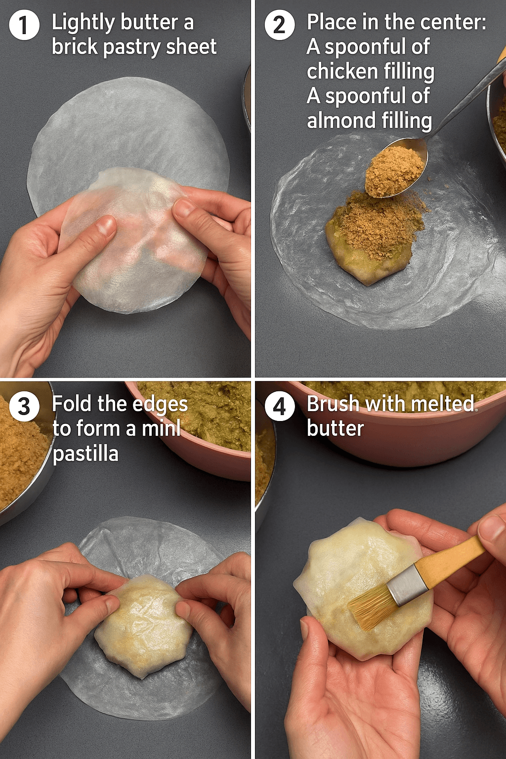 4️⃣ Assemble the Chicken Pastilla